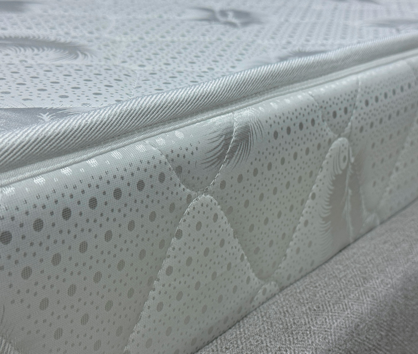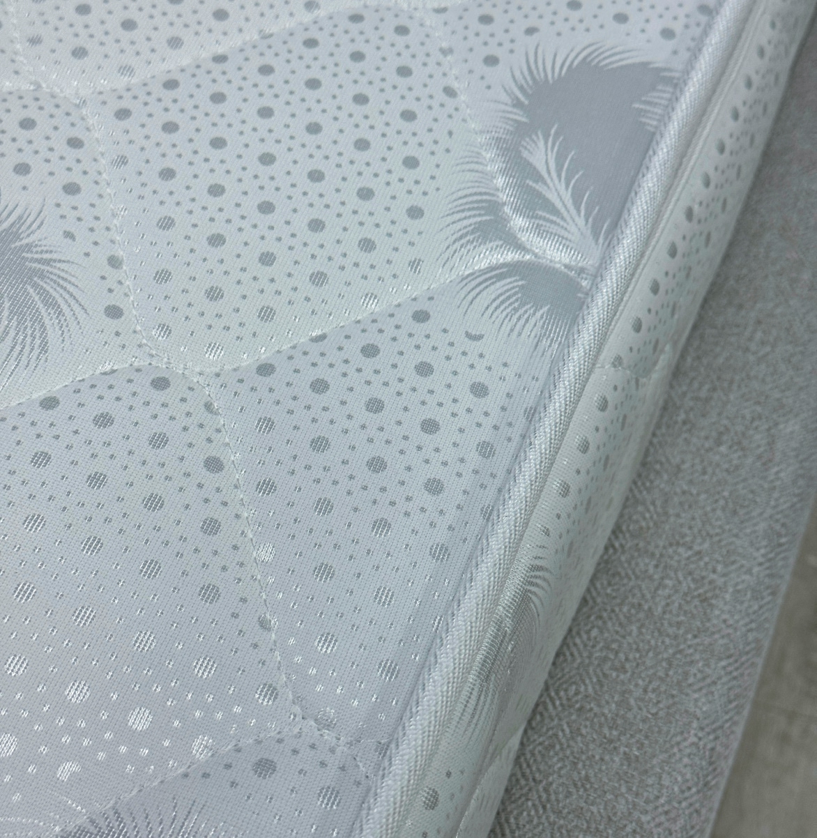 Жаккард белый - это высококачественная ткань, которая является ключевым элементом комфорта любого матраса. Изготовленная из сочетания хлопка и полиэстера, она объединяет мягкость натурального волокна и прочность синтетической нити. Ткань обладает отличными эксплуатационными свойствами: Гипоаллергенность — безопасна для чувствительной кожи. Материал «дышит» — обеспечивает оптимальный микроклимат во время сна. Долговечность — сохраняет форму матраса и внешний вид при длительном использовании.
