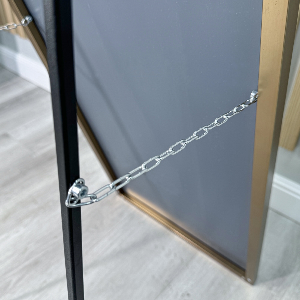 На зеркале установлена откидная ножка с надежным фиксатором в виде цепочки. Конструкция обеспечивает устойчивое положение и предотвращает его случайное опрокидывание, что делает зеркало безопасным в использовании. - ТРОЙНОЙ УРОВЕНЬ ЗАЩИТЫ